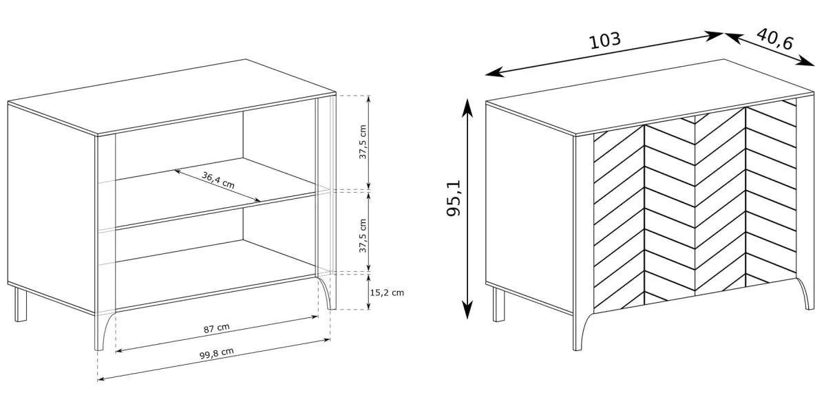 Díky dvěma skříňkám s vnitřní policí budete mít ve věcech konečně pořádek. Kvalitní výsuvy (soft close) a panty s tichým dovíráním se postarají o každodenní komfort. Rozměry viz obrázek.