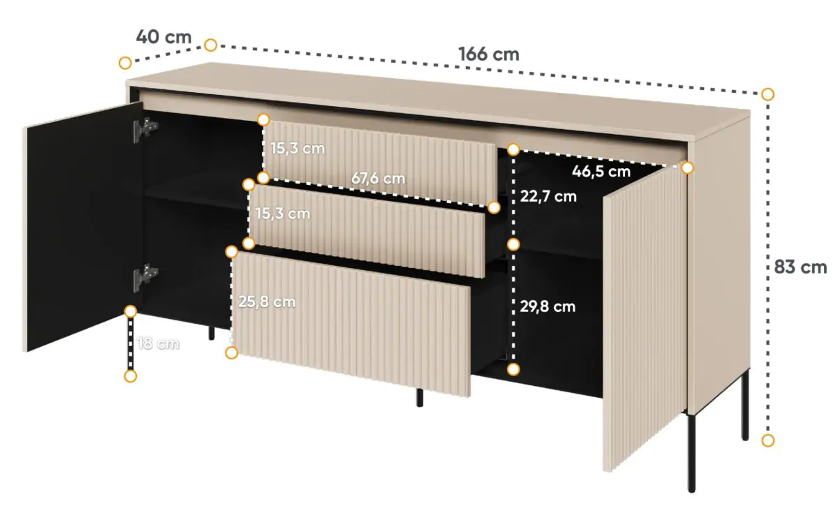 - Obsahuje - 2 dvířka + 3 prostorné zásuvky.