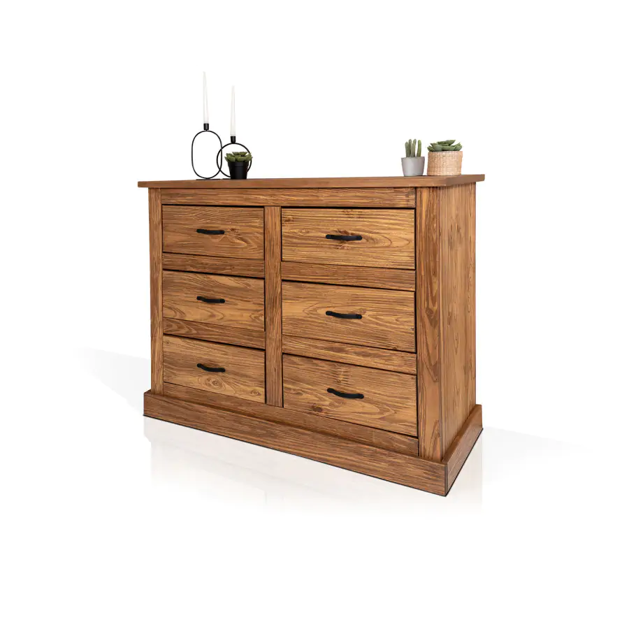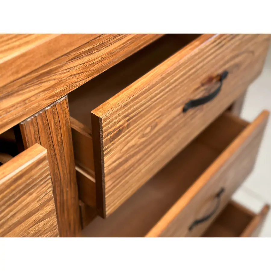 Komoda je vyrobena z pevného borovicového masivu v dekoru dub antik s přiznaným vlisem. Dřevo je ošetřeno čirým lakem, který zajistí dlouhou životnost.