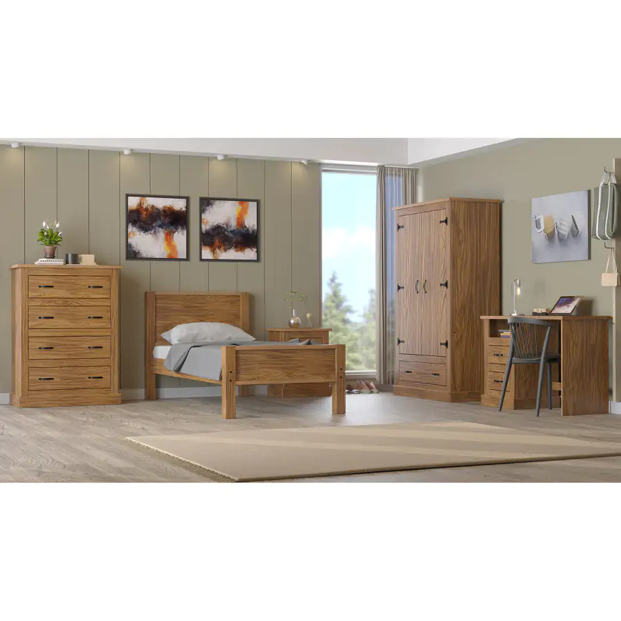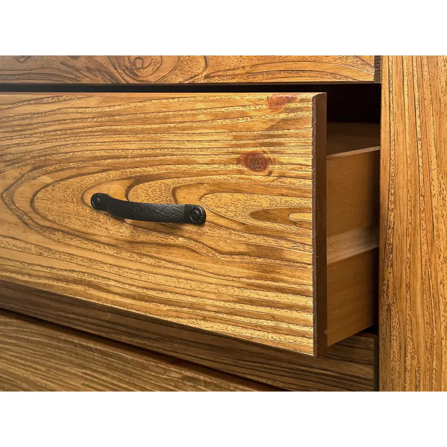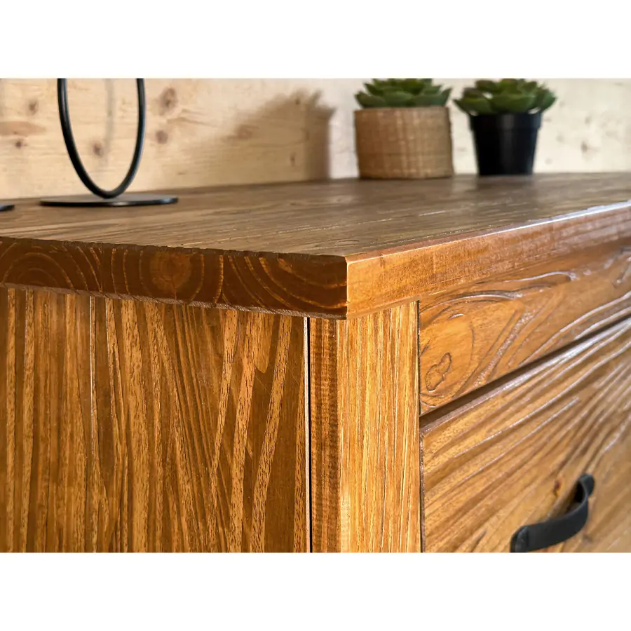 Komoda je vyrobena z pevného borovicového masivu v dekoru dub antik s přiznaným vlisem. Dřevo je ošetřeno čirým lakem, který zajistí dlouhou životnost.