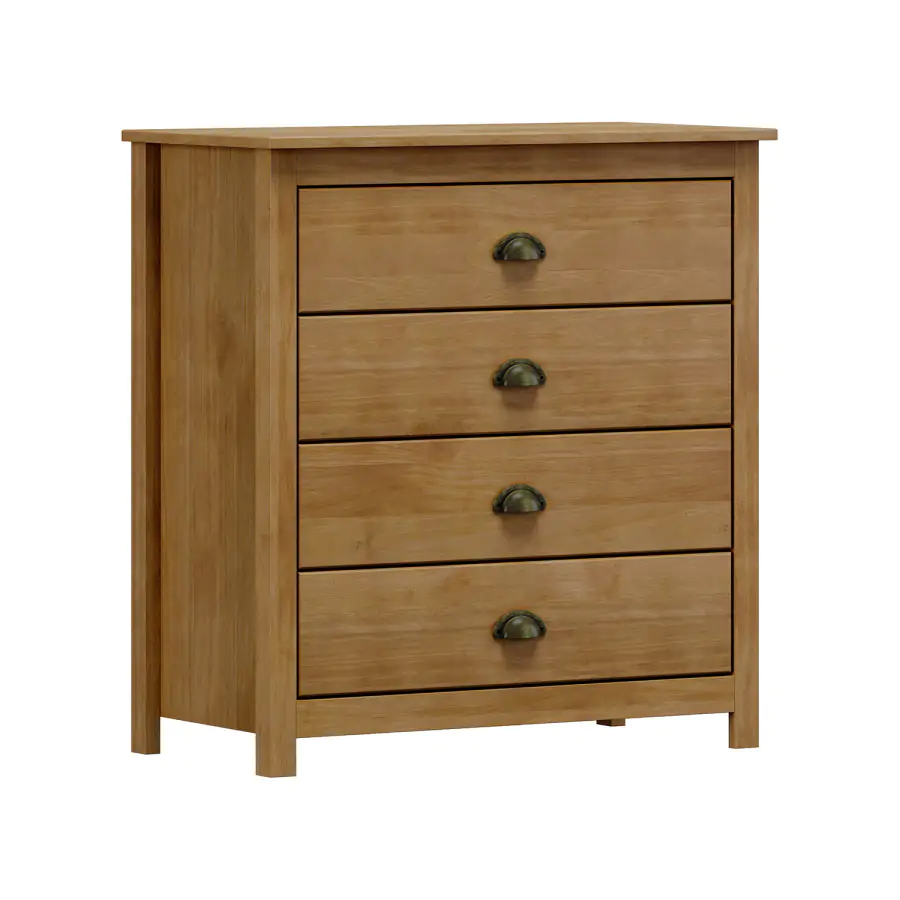Komoda TOPAZIO v barevném provedení dub přináší do interiéru pocit pořádku a přirozené krásy. Je vyrobena z masivu borovice s lakovaným povrchem, který chrání dřevo a zároveň zdůrazňuje jeho jemnou kresbu.