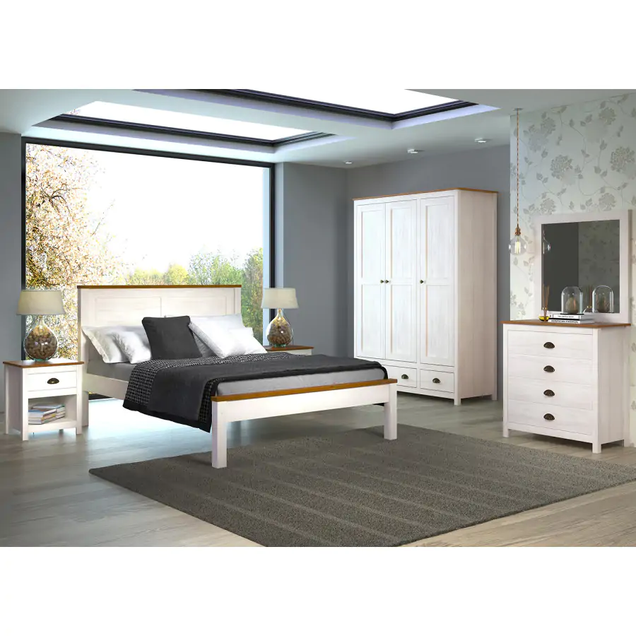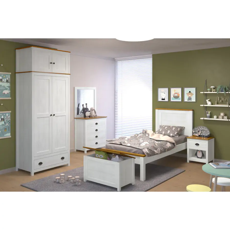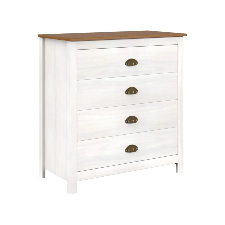 Jednoduchá komoda TOPAZIO je vyrobena z masivního borovicového dřeva v barevném provedení bílý/hnědý lak. Komoda disponuje praktickými zásuvkami s kovovými pojezdy a kovovými úchytkami.