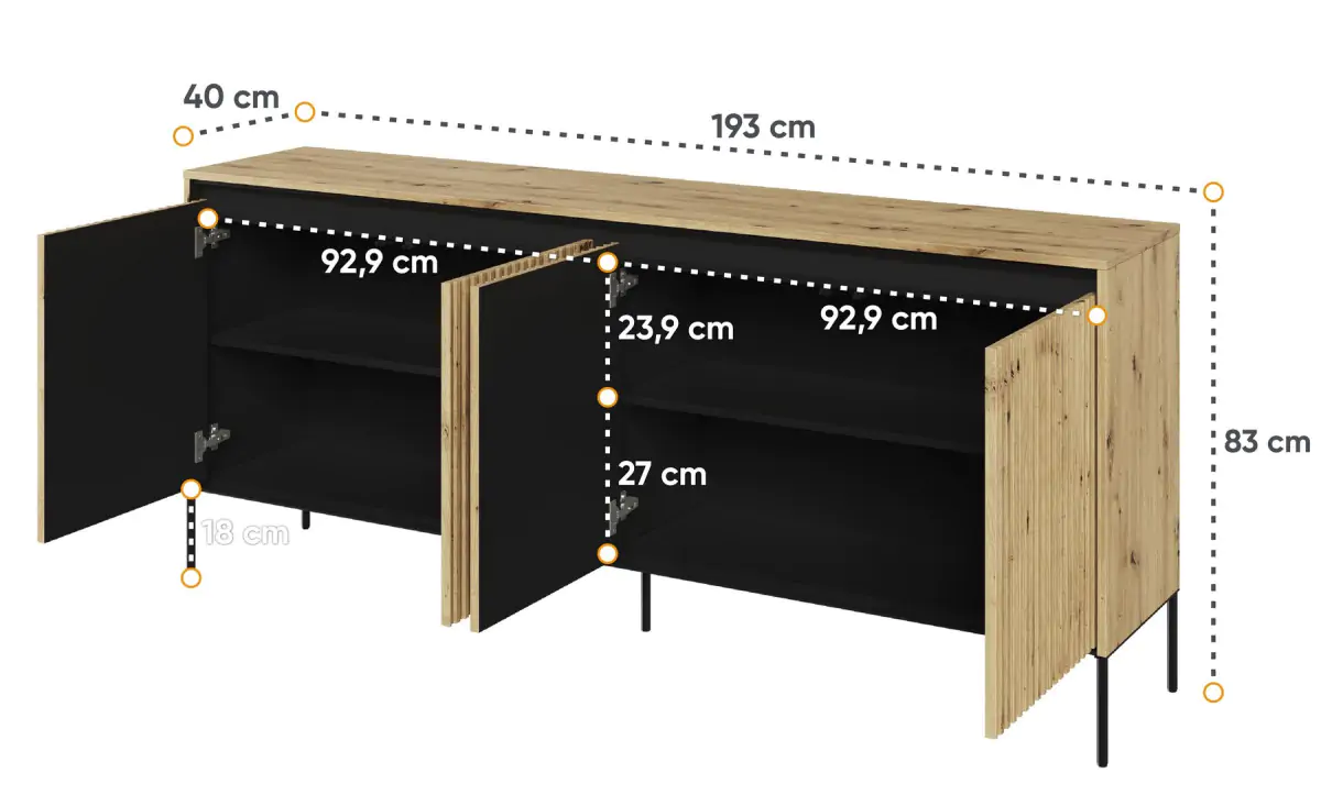 Komoda 4D nizká s LED IPOLIS - dub artisan