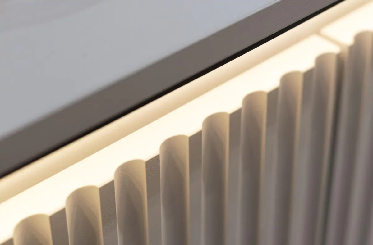 Každý kus nábytku z kolekce je vybaven LED osvětlením, které zvýrazňuje designové rýhování a vytváří 3D efekt.