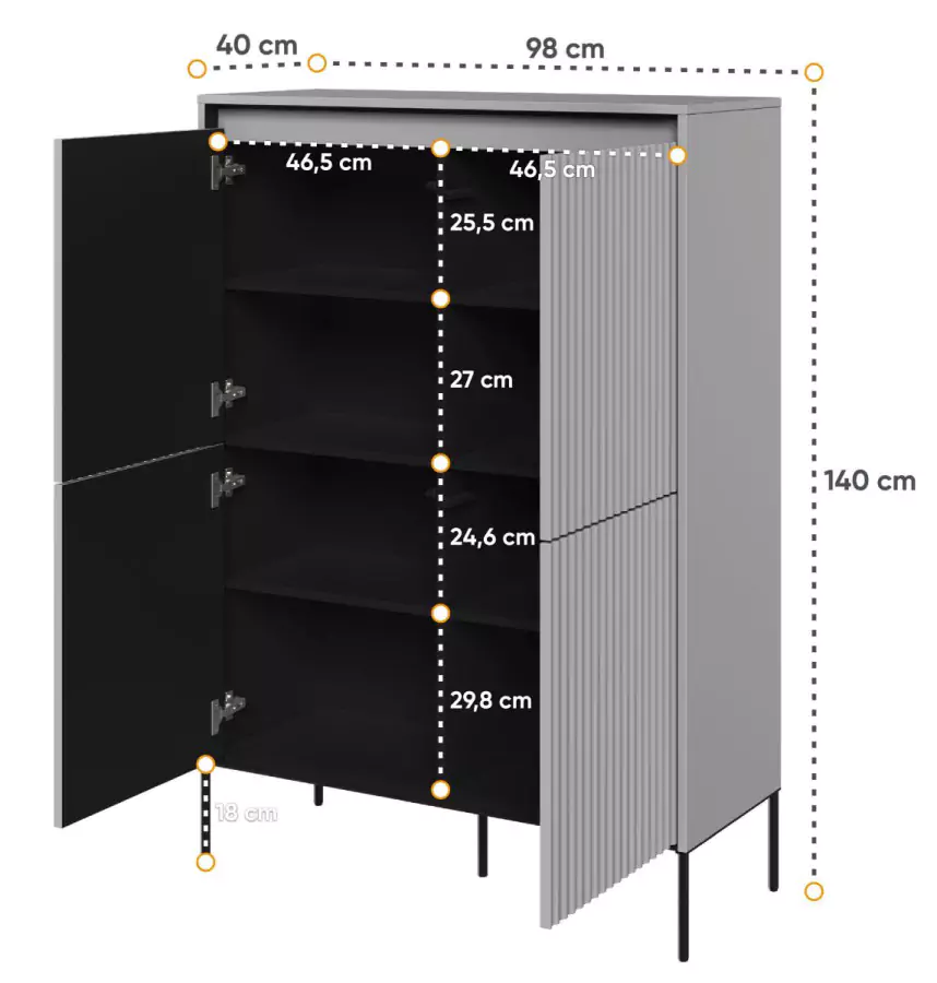 - Kovové štíhlé pevné nožky černé barvy dodávají nábytku lehkost.