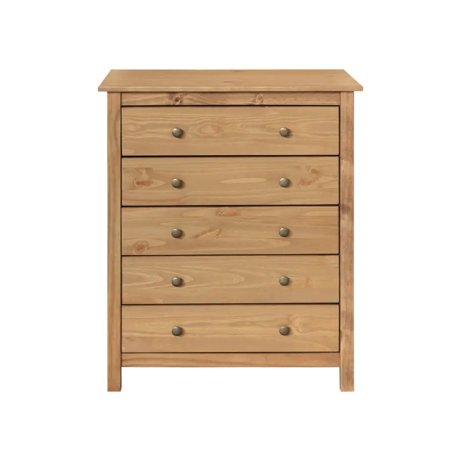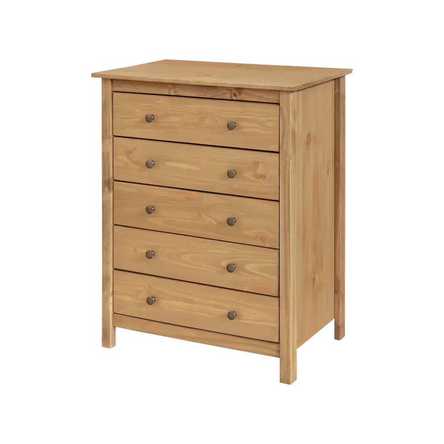 Komody stále patří mezi nejoblíbenější kousky nábytku. Nabízí spoustu úložného prostoru, ale zároveň nezaplní místnost a opticky bude prostor stále vzdušný bez nábytku ke stropům. Komoda TORINO je z masivní borovice v medovém odstínu. Nabízí nám 5 zásuvek a každá zásuvka je vybavena kovovou úchytkou v barevném provedení mosaz. Zásuvky mají kovové pojezdy. Tuto komodu lze využít jako doplňující úložný prostor k šatní skříni. Na doplňky, spodní prádlo nebo ložní prádlo. Využít ji samozřejmě můžete i v obývacím pokoji, nebo třeba v chodbě.