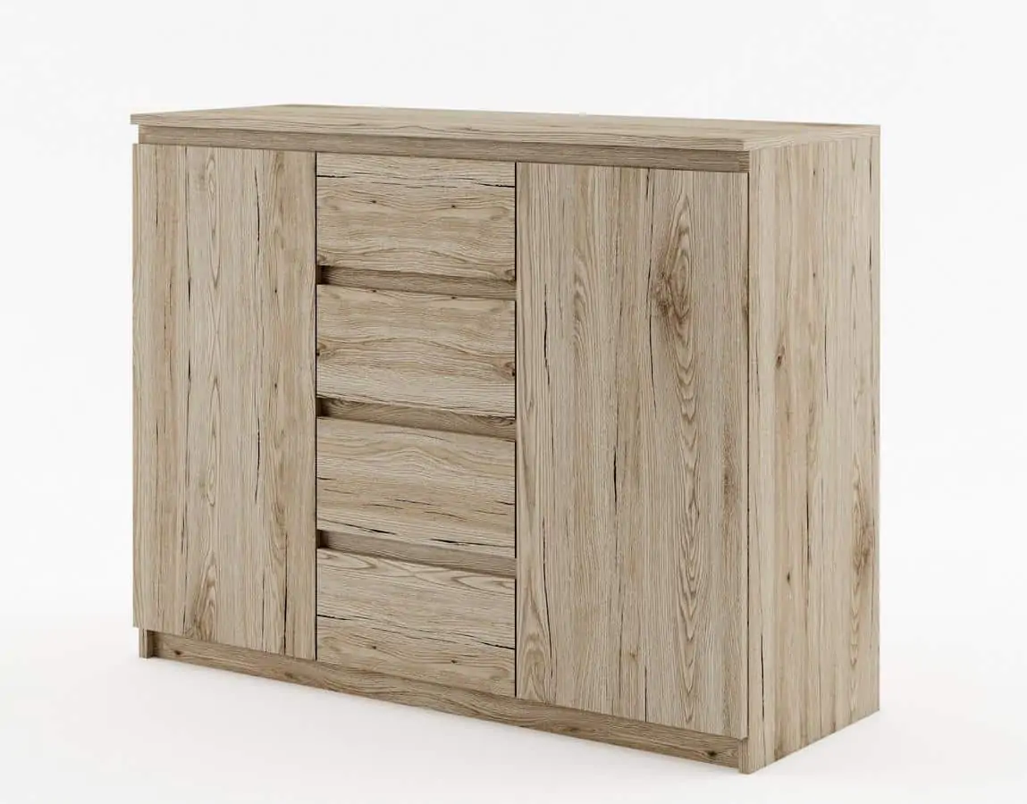Dvoudveřová komoda se 4 zásuvkami. Vhodná do moderního i klasicky laděného interiéru.