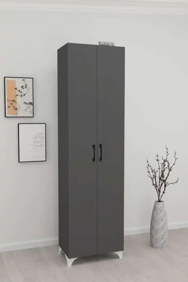 Dvoudveřová vysoká komoda CARTER 8 se sedmi policemi uvnitř je vyrobená z kvalitní LTD desky nenáročné na údržbu v moderní barvě antracit.