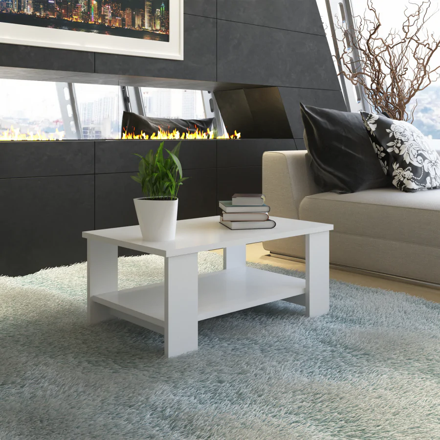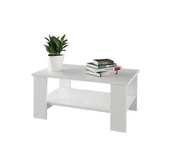 Konferenční stolek v klasickém stylu s odkládací policí nikdy nevyjde z módy. Je zhotoven z laminované dřevotřísky v bílé barvě. Dodáván v demontu.