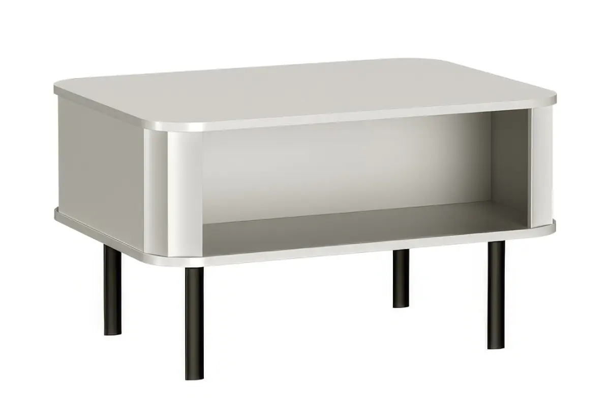 Kovové černé nožky dodávají industriální nádech. Za zmínku stojí i zaoblené desky – estetické řešení, které ocení zejména domácnosti s malými dětmi.