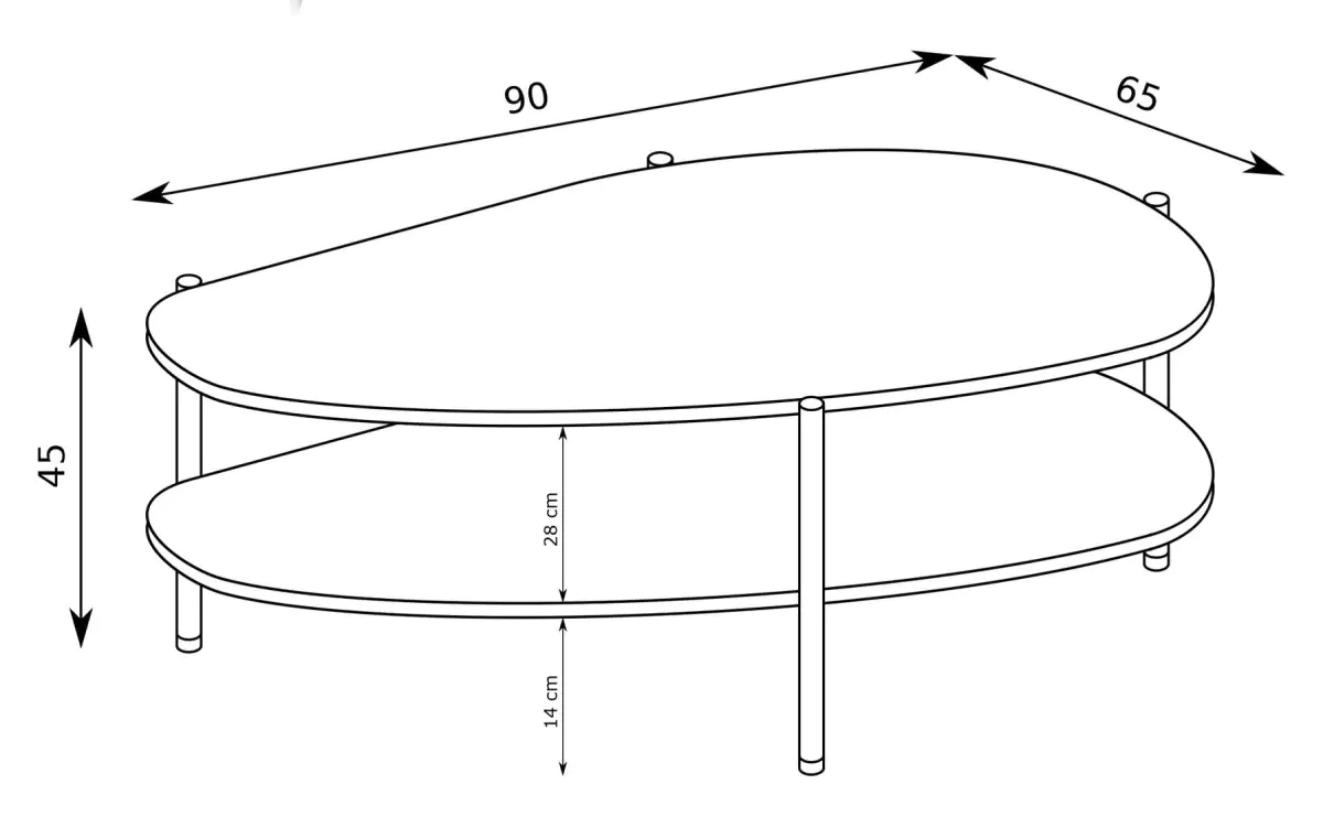Stolek podepírají štíhlé kovové nožky, které zajišťují nejen stabilitu, ale i lehkost vzhledu a snadnější úklid pod nábytkem. Odolná MDF deska stolu s ABS hranami navíc přispívá k dlouhé životnosti.