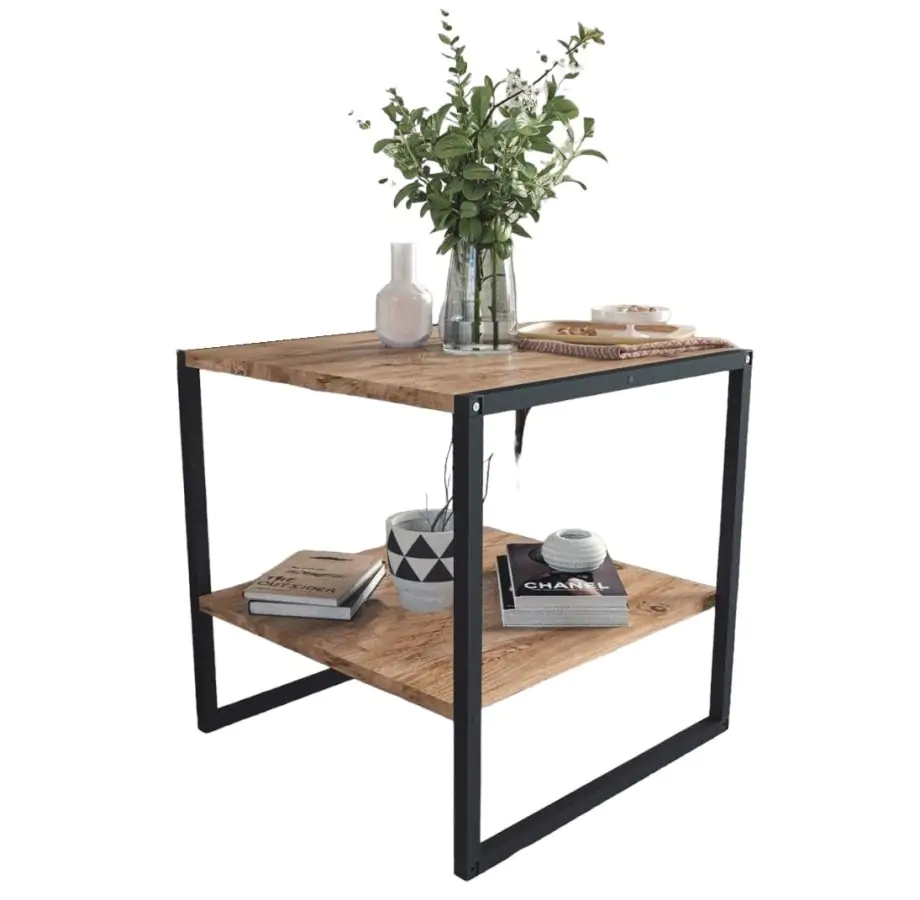 Konferenční stolek MAYER je z kovového rámu v matné černé barvě a horní deska stolu je vyrobena z kvalitní LTD desky v barvě borovice.