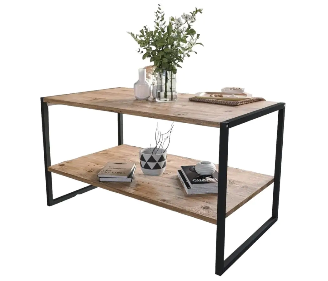 Konferenční stolek MAYER je z kovového rámu v matné černé barvě a horní deska stolu je vyrobena z kvalitní LTD desky v barvě borovice.
