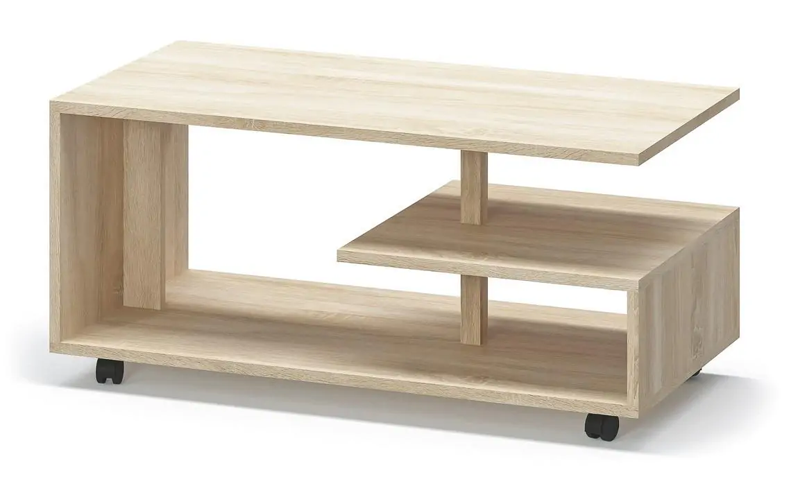Konferenční stolek na kolečkách v moderním provedení. Stolek je vyroben z kvalitní LTD v barvě dub sonoma. Dodáváme v demontovaném stavu.