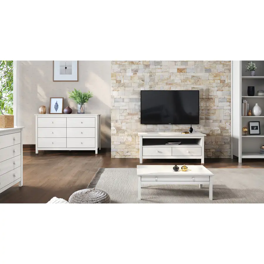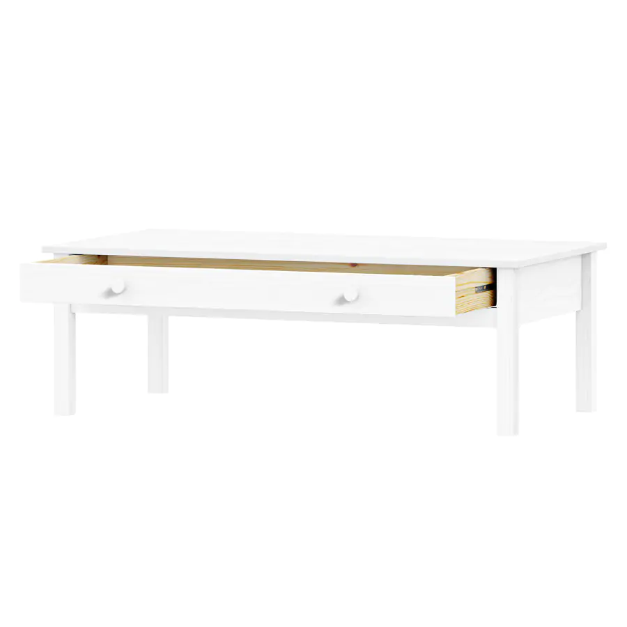 Konferenční stolek TORINO 8092B v bílém provedení z masivní borovice je skvělým společníkem do každého světle zařízeného obýváku. Stolek je vybaven širokou zásuvkou s kovovými pojezdy. Díky ní nemusíte mít všechny věci odložené na stolku a jednoduše je do zásuvky schováte, aby nebyly na očích.