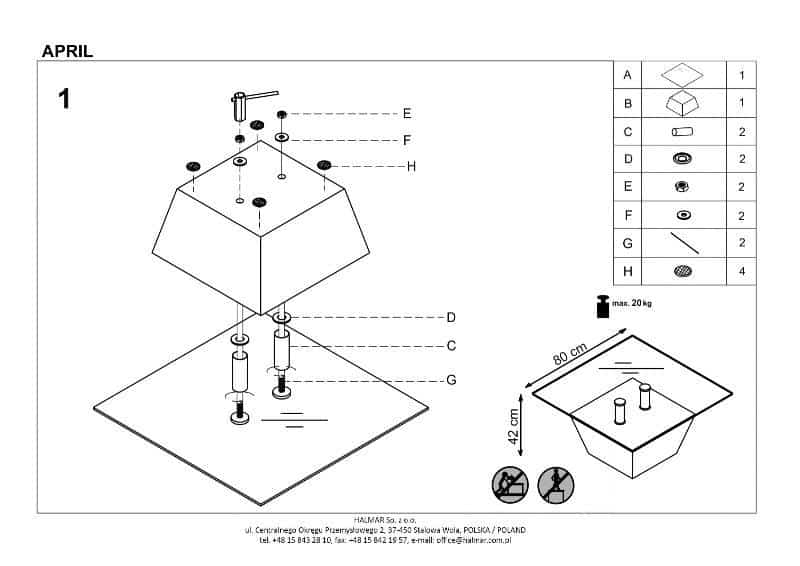 Tento čtvercový stolek je vyroben v kombinaci robustní podnože z bíle lakované MDF a skleněné desky. Deska je na podnož upevněna pomocí kovových výztuží.