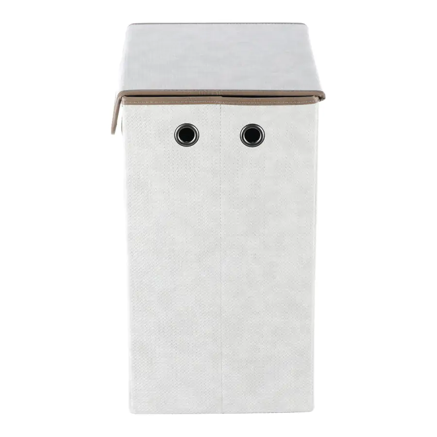 Tento rozkládací látkový koš DT3004 CRM v krémové barvě s víkem na suchý zip, je skvělou volbou pro praktické a elegantní uskladnění prádla či jiných věcí.