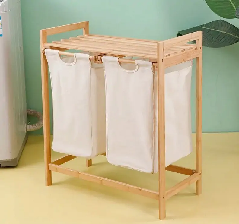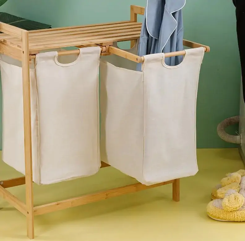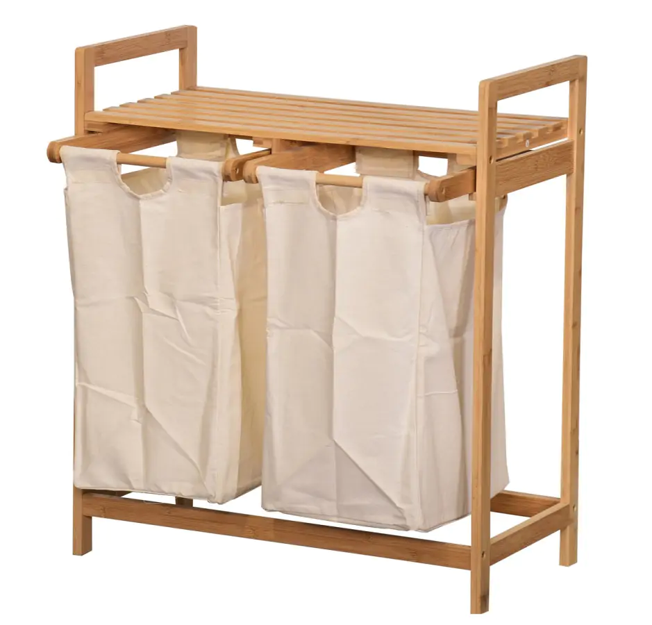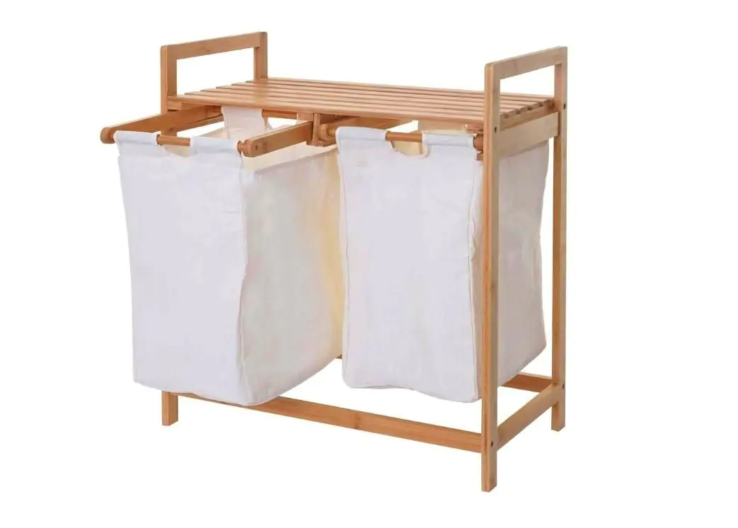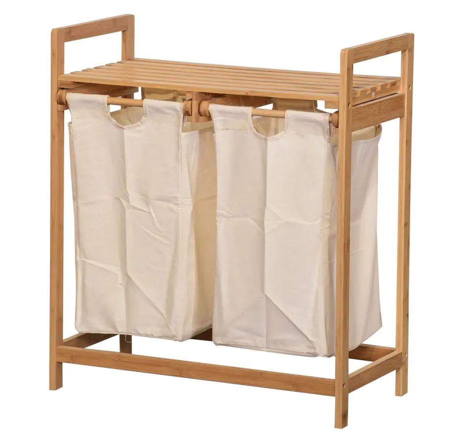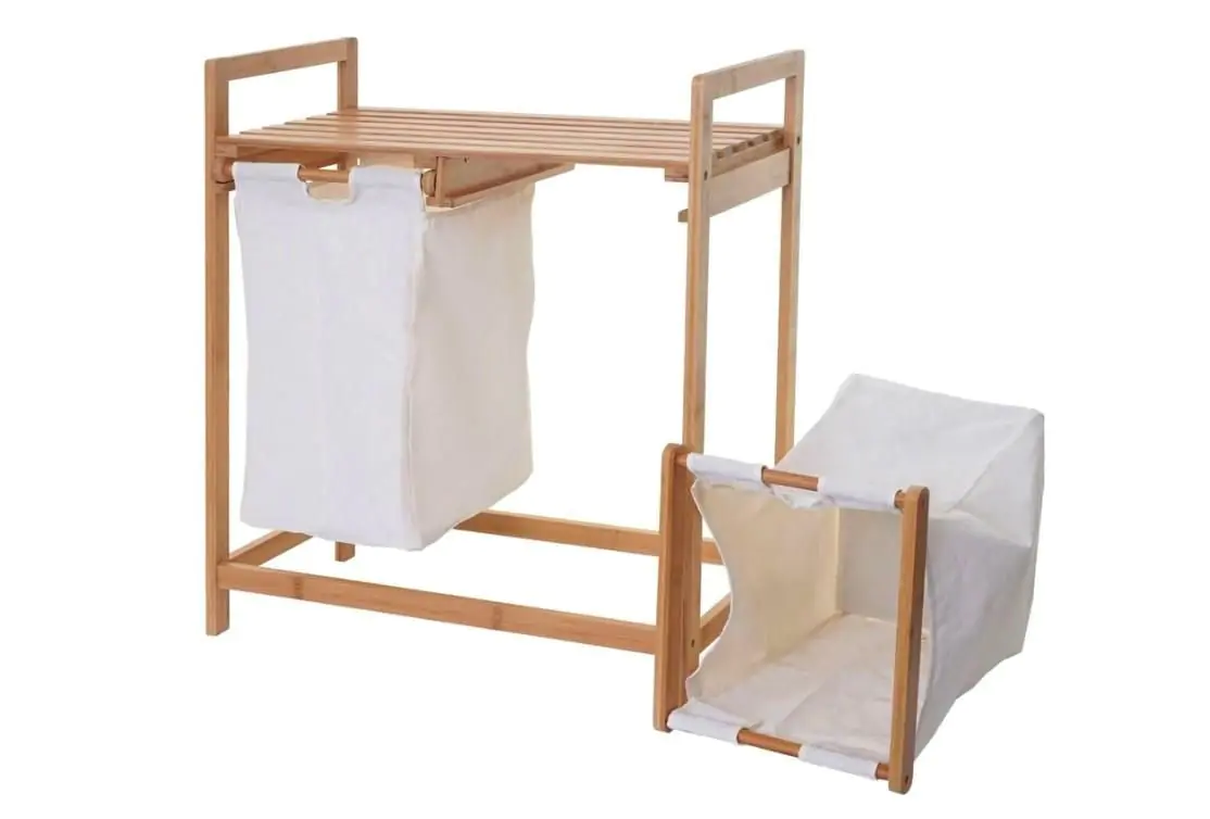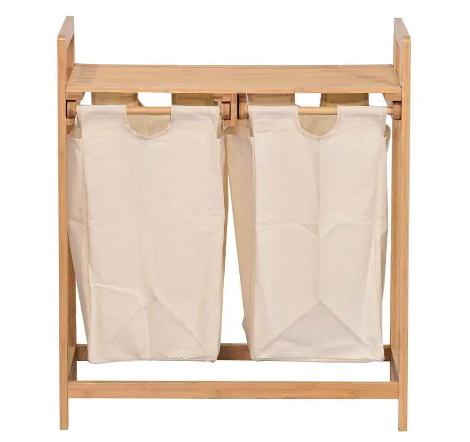 Koš na prádlo ANDAMAN je vyroben z přírodního bambusu a má dva odnímatelné látkové vaky na prádlo.