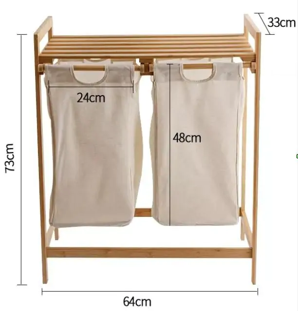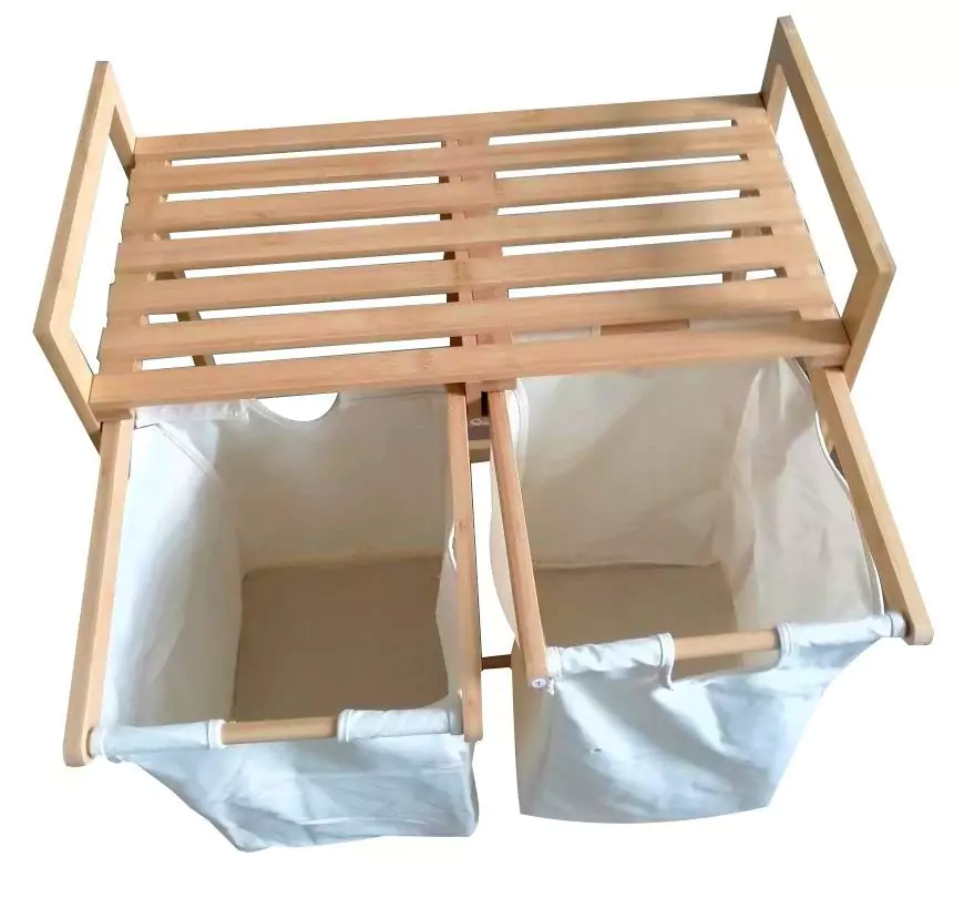 Koš na prádlo ANDAMAN je vyroben z přírodního bambusu a má dva odnímatelné látkové vaky na prádlo. Objem koše je cca 35 l, maximální nosnost horní desky je 15,5 kg. Dodáváme v demontovaném stavu.