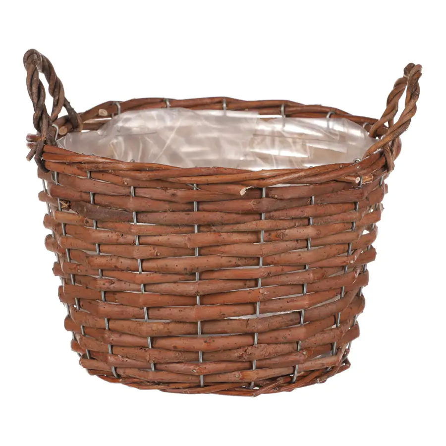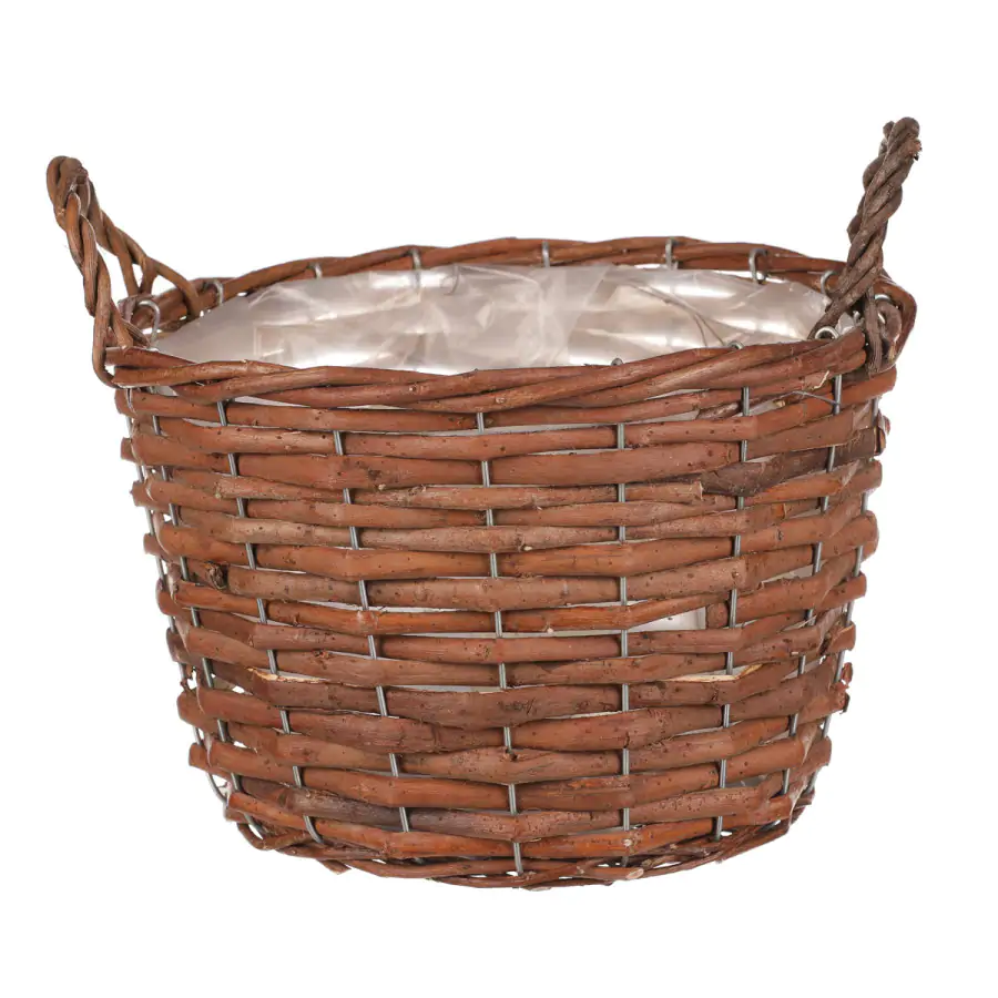 Tento obal přináší nezaměnitelný dojem ruční práce, což jej činí jedinečným. Kromě toho je součástí produktu igelitová vložka, která chrání proutí před vlhkostí a zároveň rostlinám pomáhá udržovat ideální podmínky pro růst.