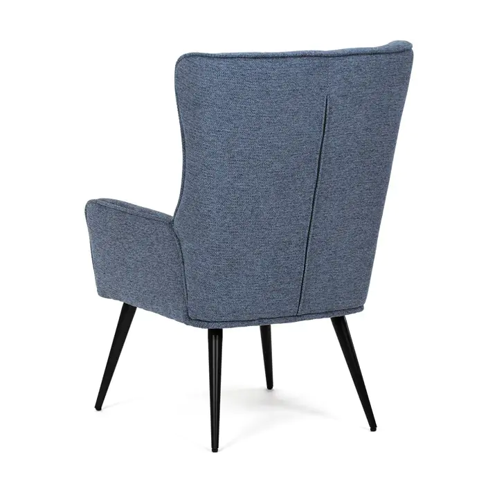 Pohodlný látkový a voděodolný sedák s opěrákem poskytují komfort při dlouhém sezení. Černé kovové nohy zabezpečují stabilitu a pevnost, což činí tento kus nábytku ideálním pro každodenní použití.