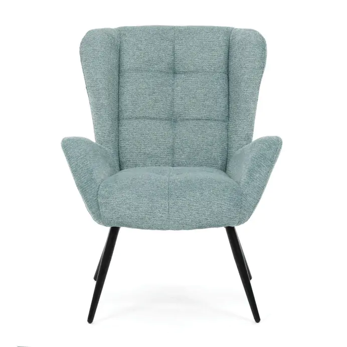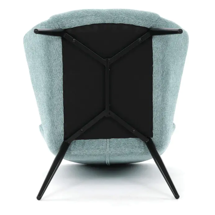 Pevná kovová podnož v matné černé barvě zajišťuje stabilitu a dlouhou životnost. Ergonomicky tvarované područky doplňují komfort při sezení a podporují správnou oporu paží. Design křesla kombinuje klasický tvar ušáku s moderním minimalistickým vzhledem, což umožňuje jeho využití v různých typech interiérů. Křeslo není rozkládací ani otočné, což podtrhuje jeho pevnou a stabilní konstrukci.
