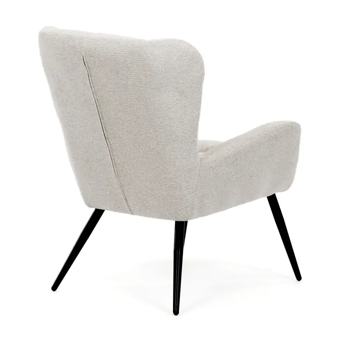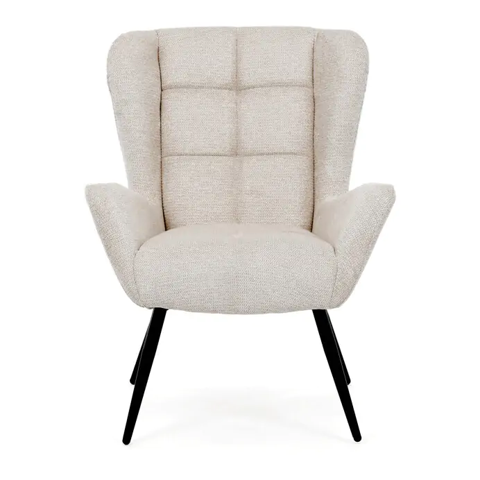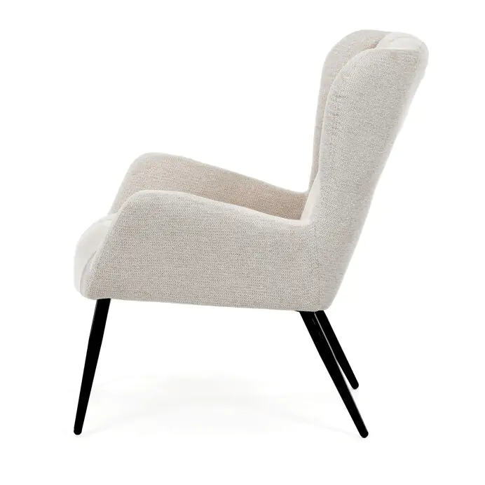 Křeslo ušák AK-H9206 CRM2 v krémovém odstínu nabízí pohodlí díky vysokému polstrování sedáku i opěradla, které je potažené prémiovou látkou s příjemnou texturou. Pevné černé kovové nohy zajišťují stabilitu a dlouhou životnost, zatímco integrované područky přispívají k ergonomickému posedění. Design s charakteristickými vysokými bočními opěrkami poskytuje oporu hlavy a ramenům, což zvyšuje komfort při odpočinku. Křeslo je vhodné do moderních i klasických interiérů, kde vynikne svým nadčasovým tvarem a neutrálním barevným provedením.