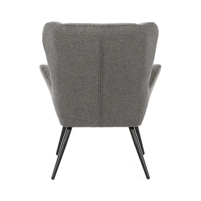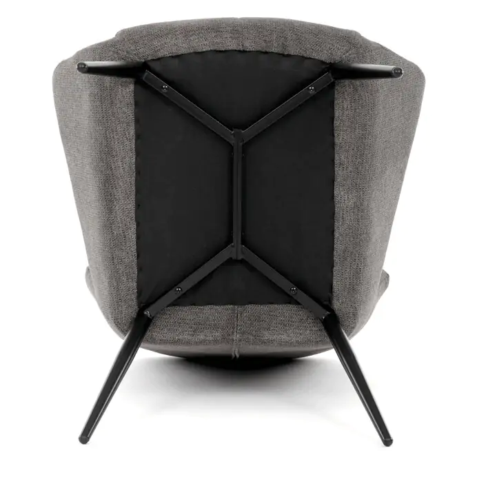 Pevná kovová podnož v černém matném provedení zajišťuje stabilitu a dlouhou životnost. Ergonomicky tvarované područky doplňují komfort při odpočinku, zatímco design křesla s charakteristickými vysokými bočními opěrkami poskytuje dostatečnou oporu hlavy a ramen. Křeslo není otočné ani rozkládací, což podtrhuje jeho jednoduchost a pevnost. Díky svému nadčasovému vzhledu se hodí do různých interiérů, kde oceníte kombinaci funkčnosti a stylu.