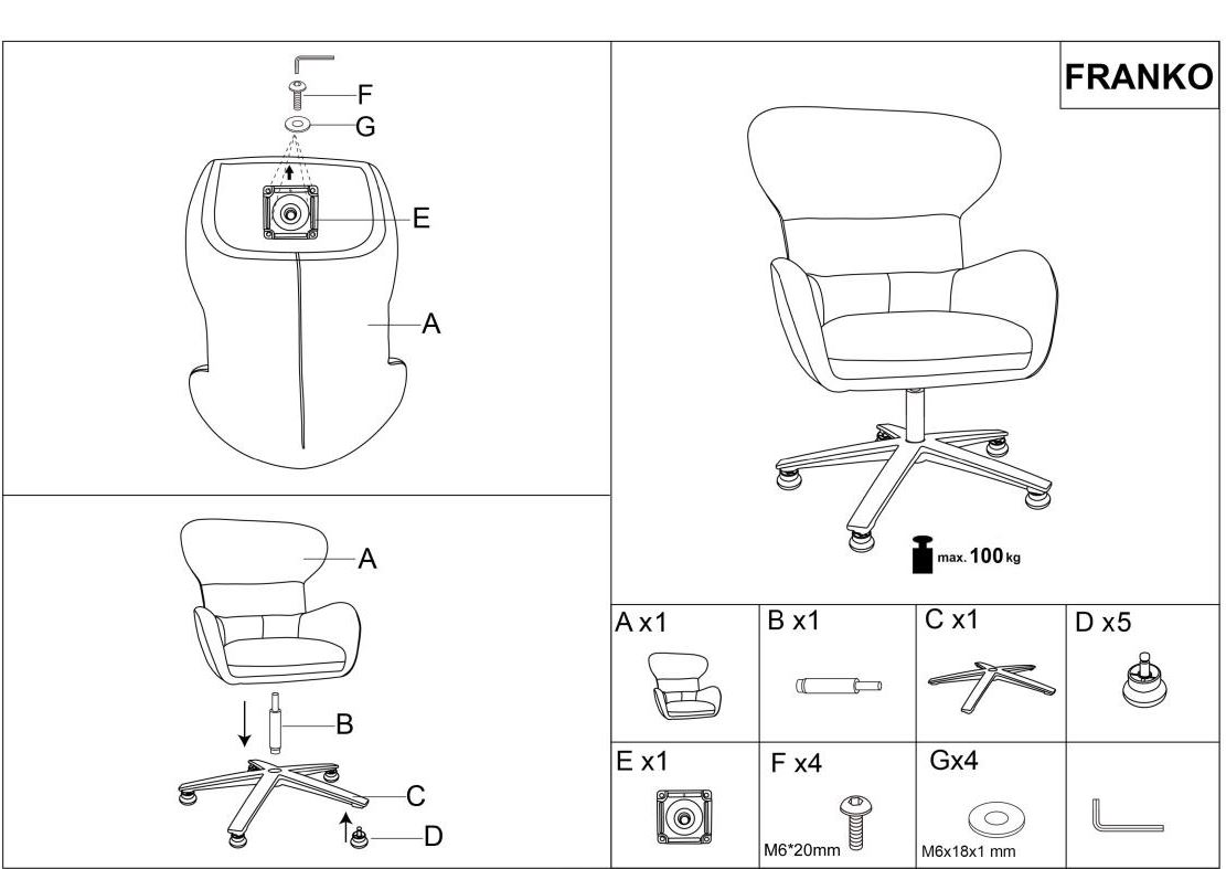 Moderní otočné křeslo FRANCO je skvělou kombinací klasického provedení ušáku a moderního designu. rozměry: 80/83/104/45 cm plynulé otáčení o 360 stupňů materiál: látka / ocel s...