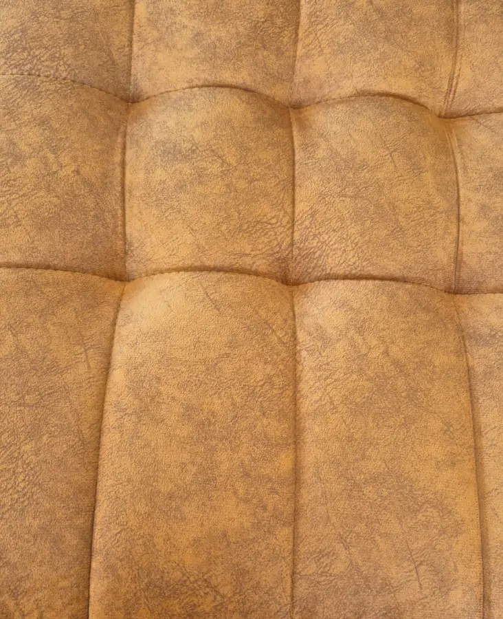 Křeslo je potaženo příjemnou látkou hnědé barvy s žíháním a atraktivním prošíváním.