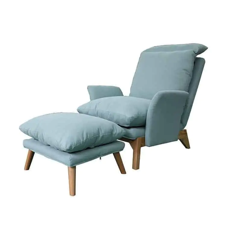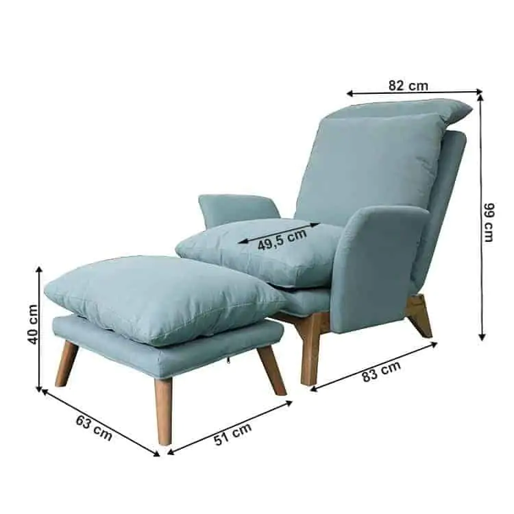 Je čalouněno kvalitní látkou v mentolové barvě, nohy jsou z masivního dřeva v přírodní barvě.