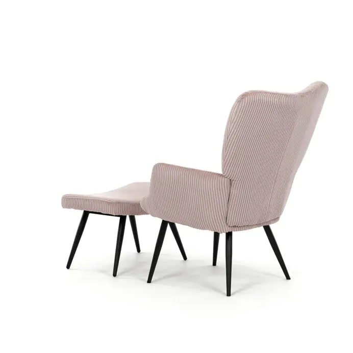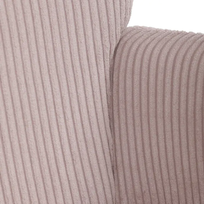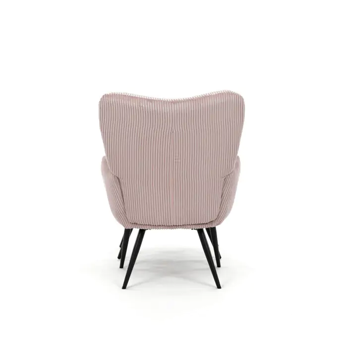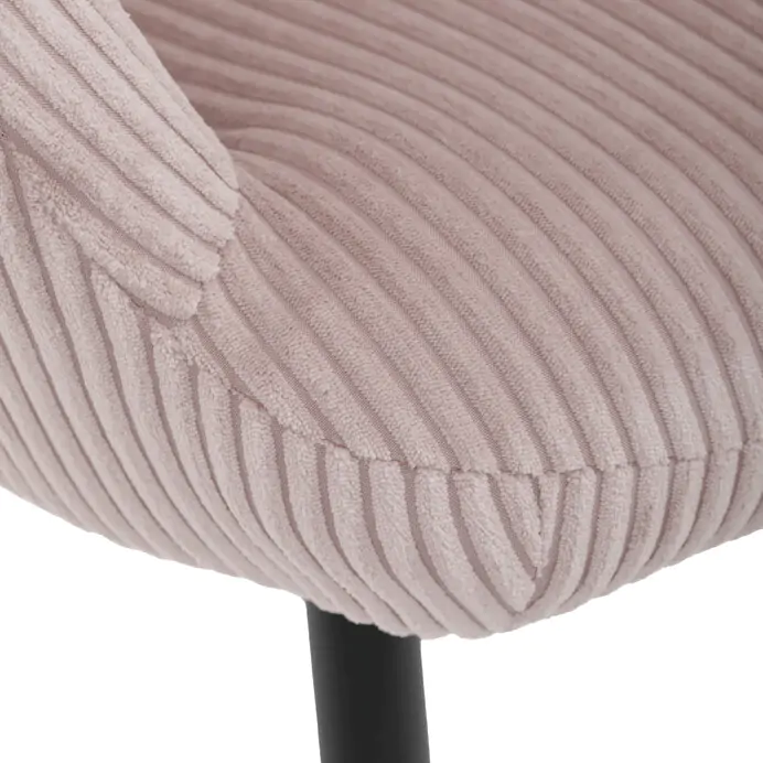Pevné černé kovové nohy zajišťují stabilitu a dlouhou životnost. Manšestrová látka dodává křeslu příjemnou texturu a vizuální hloubku, která se hodí do moderních i klasických interiérů.
