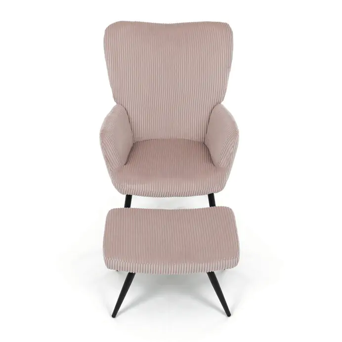 Relaxační křeslo AK-L7285 BLUE6 s podnožkou v starorůžovém manšestru nabízí pohodlné posezení díky měkkému čalounění a ergonomicky tvarovaným područkám.
