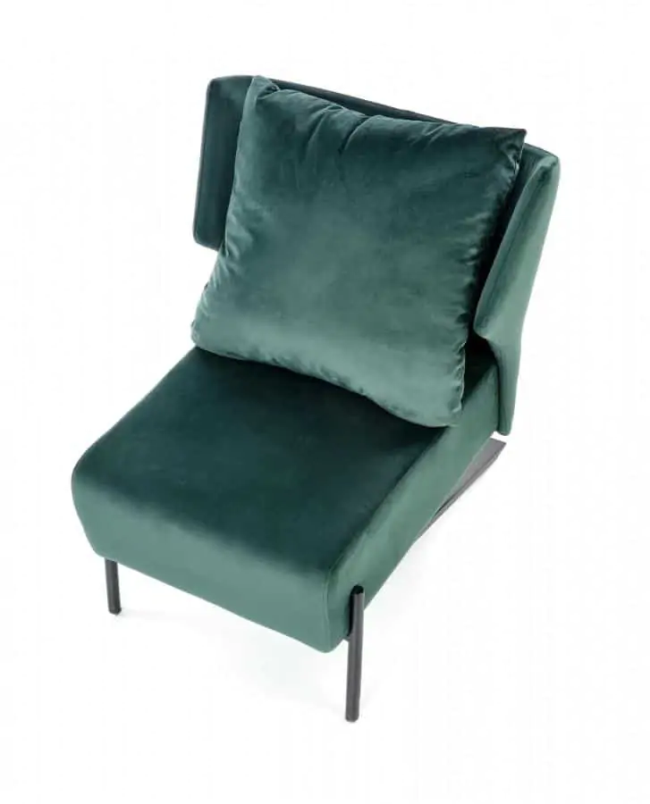 Extravagantní moderní křeslo v oblíbené sametové látce Velvet. Pro vaše větší pohodlí je v zádové opěrce měkký a pohodlný polštář. barva: zelená/černá nosnost: 100kg dodáváno v demontu ...