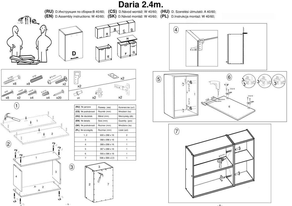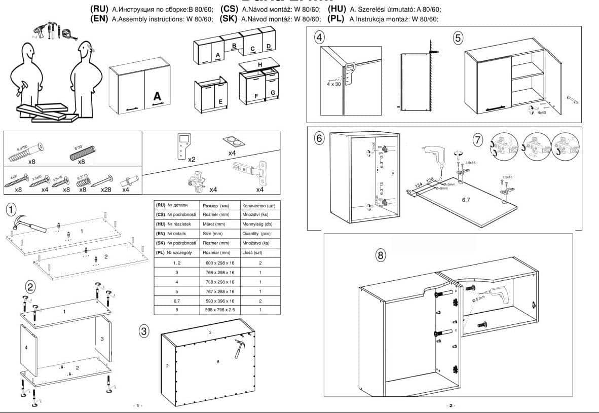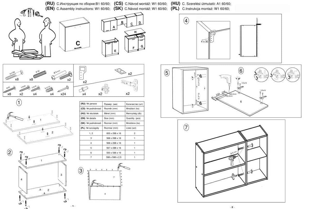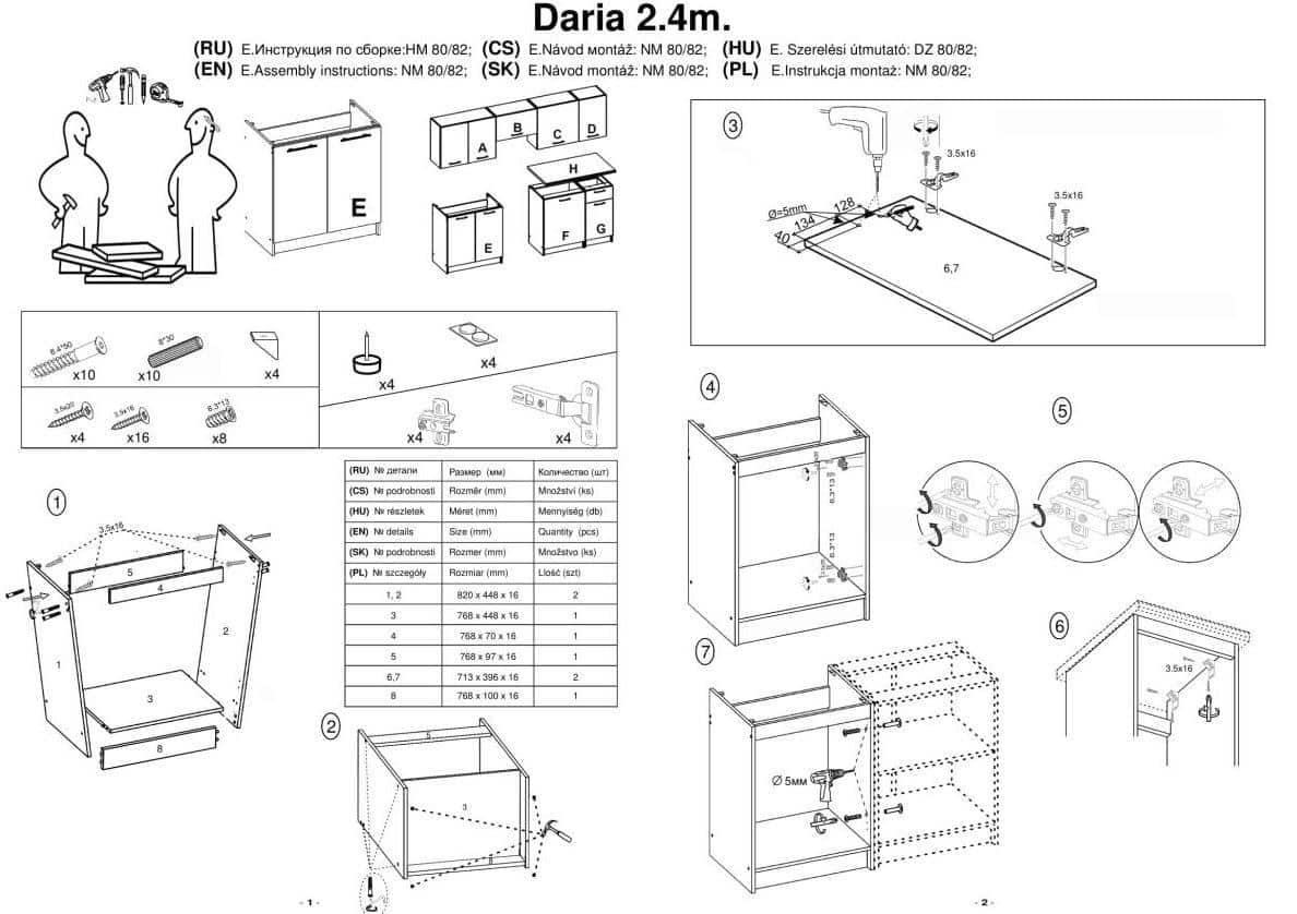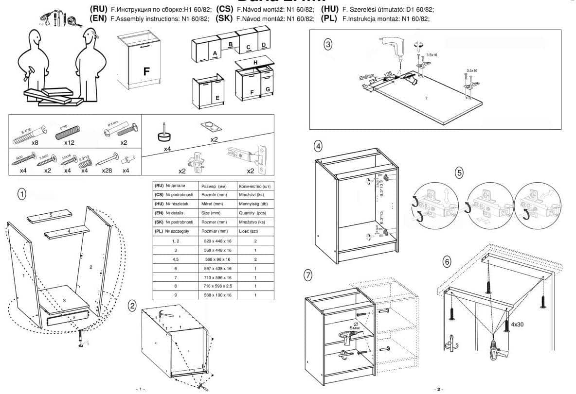 • spodní skříňka - šíře 60 cm, hloubka 44,8 cm, výška 82 cm
