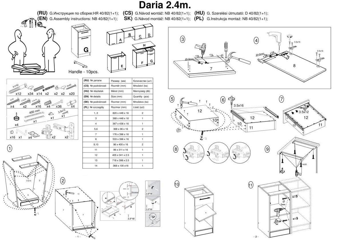 • spodní skříňka - šíře 40 cm, hloubka 44,8 cm, výška 82 cm
