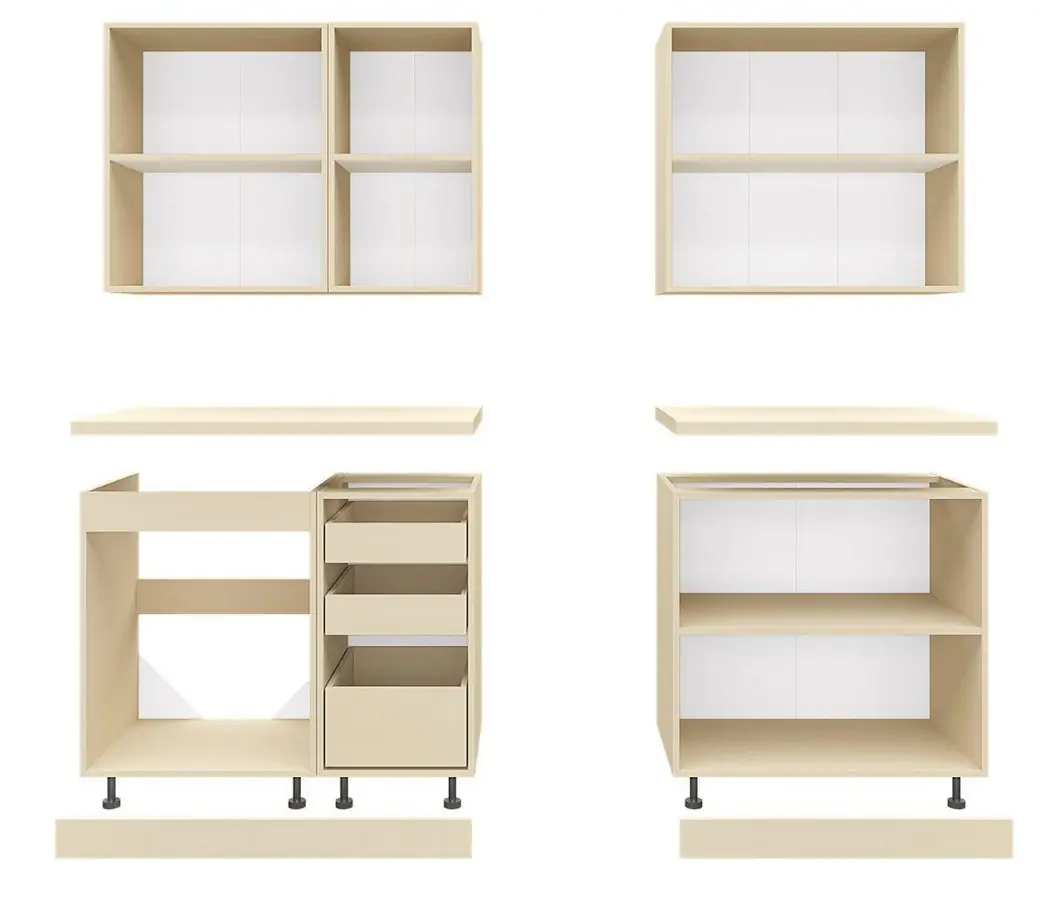 Kuchyně se prodává jako sestava, dokoupení skříněk není možné. Možnost dokoupení dřezu nebo pracovní desky.