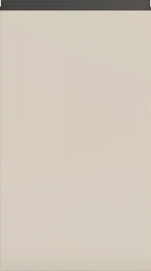 Materiál LTD, korpus je v bílé barvě, dvířka jsou v barvě satin/clay gray s integrovanými úchytkami.