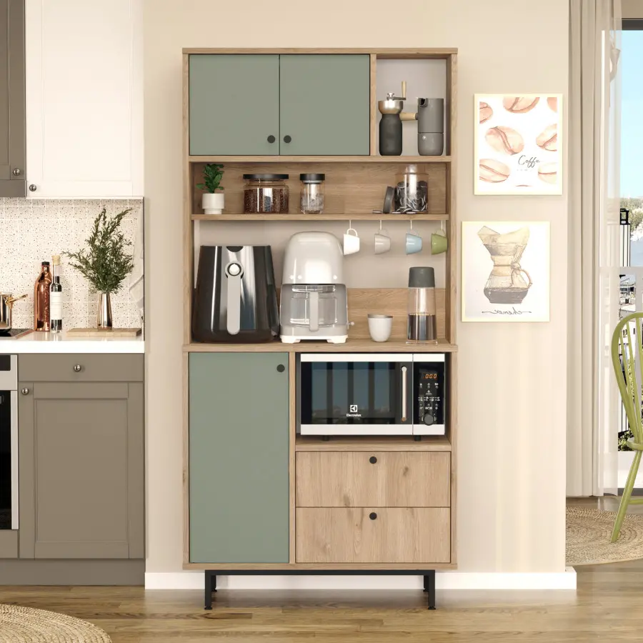 Policová skříň je ideálním řešením pro praktické a stylové uspořádání vaší kuchyně. Tato vysoká víceúčelová skříň nabízí dostatek úložného prostoru, který zahrnuje i místo pro mikrovlnnou troubu. Díky modernímu designu a kvalitnímu zpracování je skříň nejen funkční, ale také estetickým doplňkem vašeho interiéru.