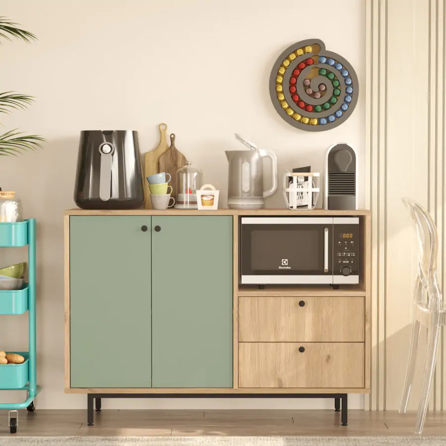 Spojuje praktické vlastnosti a moderní vzhled. Je ideální pro uložení mikrovlnky a zároveň poskytuje dostatek prostoru pro další kuchyňské potřeby. Kvalitní materiály a jednoduchá montáž zaručují dlouhodobé využití bez kompromisů na designu.