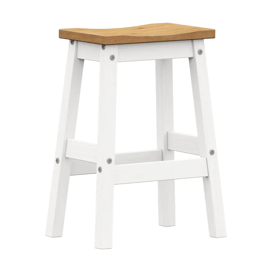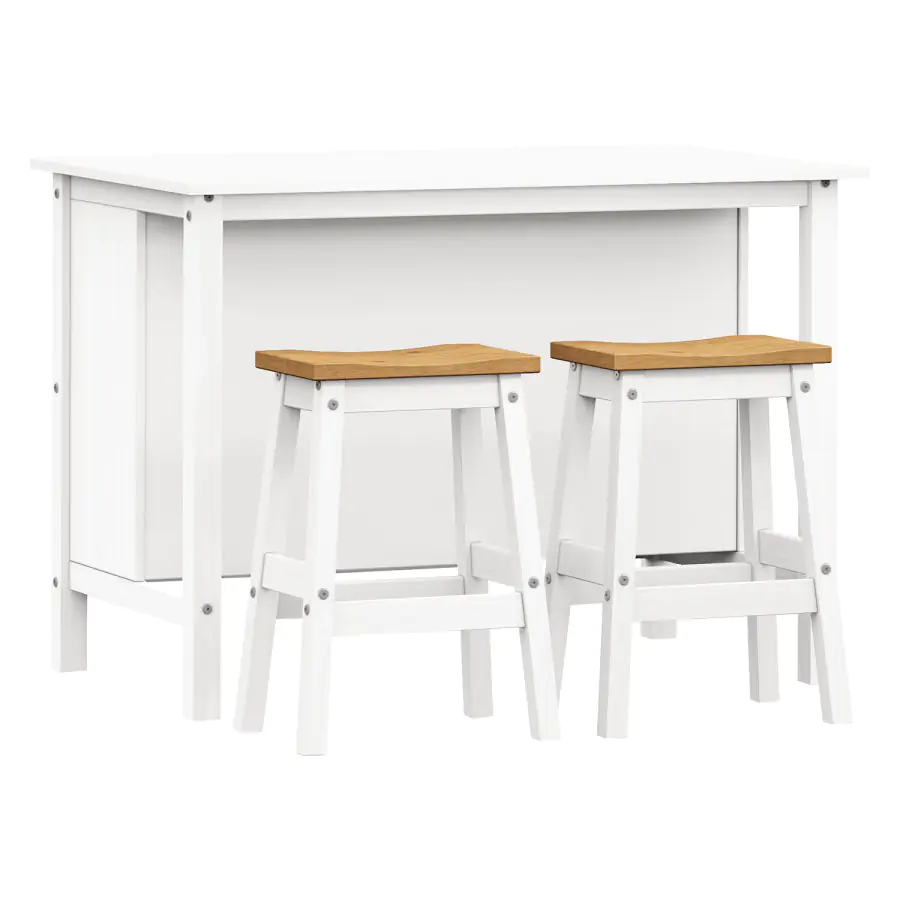 Praktický kuchyňský ostrůvek 11001W a 2 barové stoličky 13293B CORONA 2. materiál masiv borovice voskovaná v bílém a medovém odstínu rozměr ostrůvku (š/h/v) 126 × 77 × 91 cm barové...