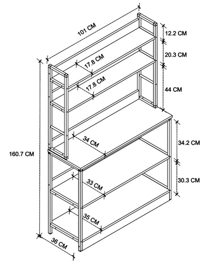 Praktický policový regál WILBURG industriálního stylu vhodný nejen do kuchyně je z kovového rámu v matné černé barvě a police jsou vyrobeny z kvalitní LTD desky v barvě borovice.