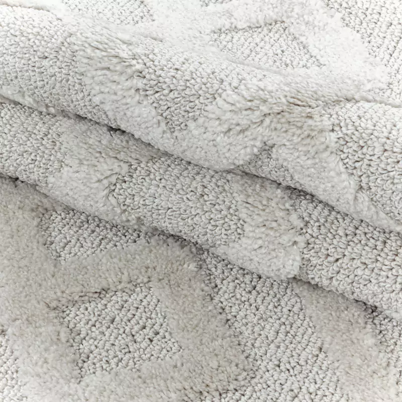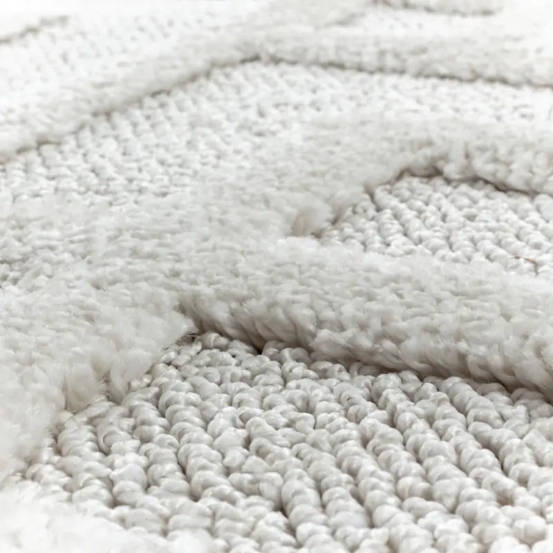 Krémový koberec Pisa 4708 ve skandinávském stylu s 3D geometrickým motivem.