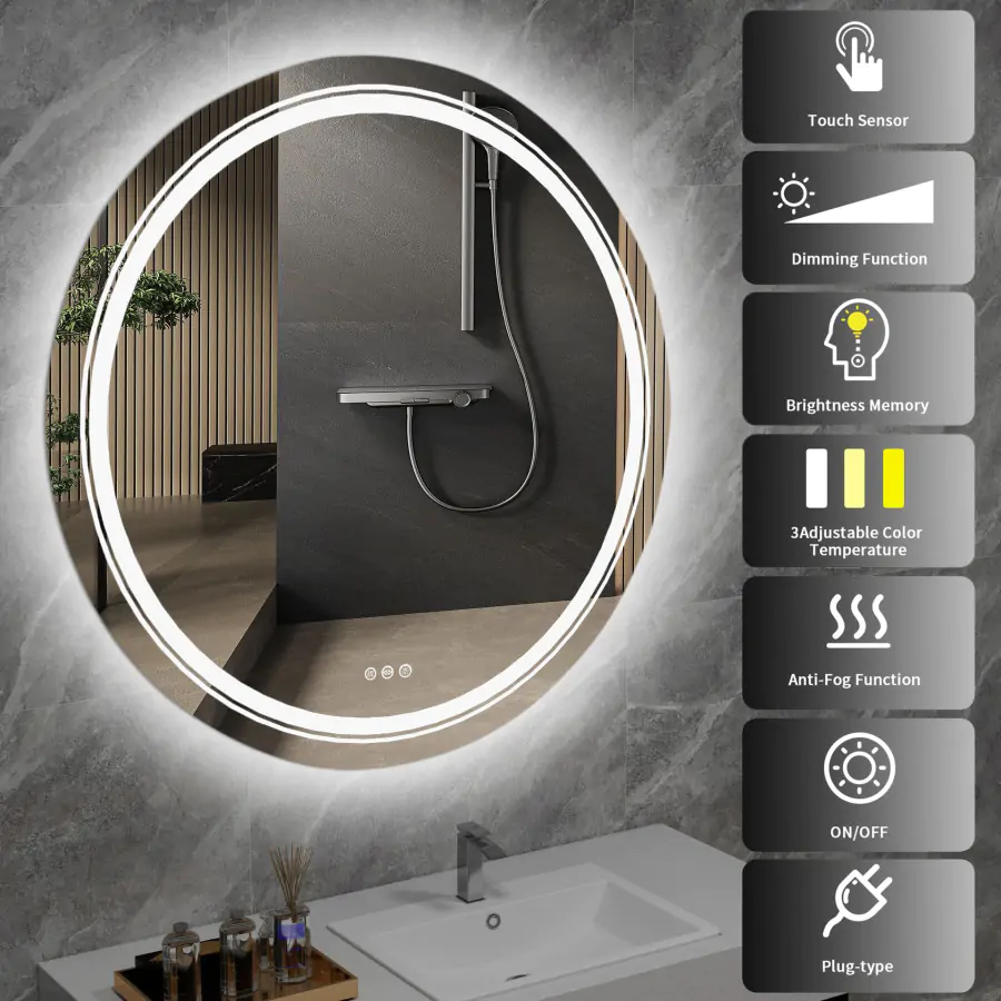 Integrované LED osvětlení po obvodu zajišťuje rovnoměrné a příjemné světlo ideální pro každodenní hygienu i líčení.
