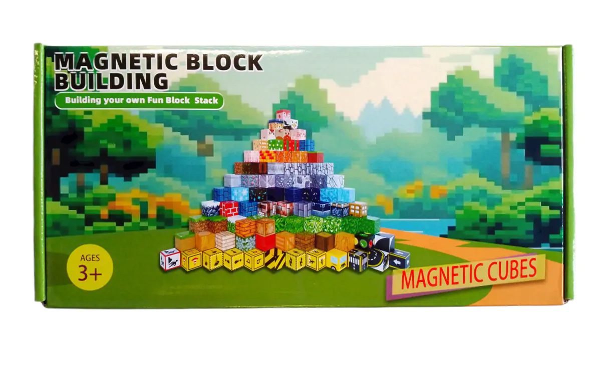Součástí je i figurka s krumpáčem, která dodává hře dobrodružný prvek a podporuje dětskou fantazii při vytváření vlastních příběhů. Stavebnice obsahuje magnetické kostky s realistickými potisky různých herních textur – tráva, voda, kámen, dřevo nebo bedny. Díky silným vnitřním magnetům se jednotlivé díly snadno spojují, drží tvar a umožňují stabilní stavby.