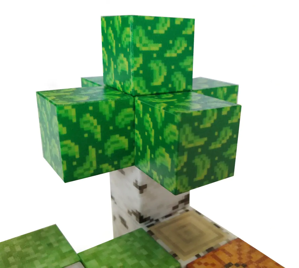 Kostky mají kvalitní potisk, který napodobuje textury z Minecraftu – trávu, kámen, dřevo nebo dýni. Materiál je bezpečný, netoxický a vhodný pro děti od 3 let. Díky magnetům je manipulace snadná i pro malé děti a zároveň podporuje jemnou motoriku a prostorovou představivost.