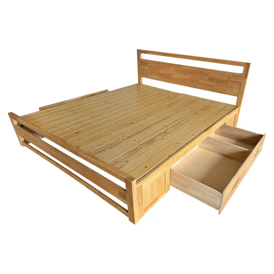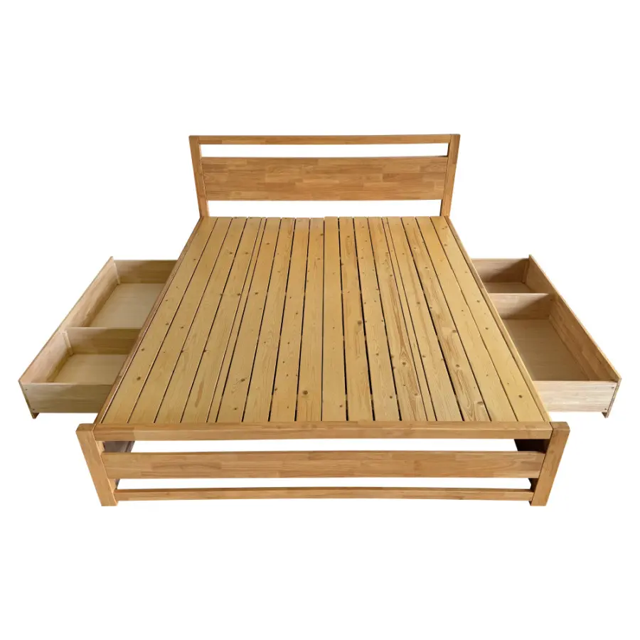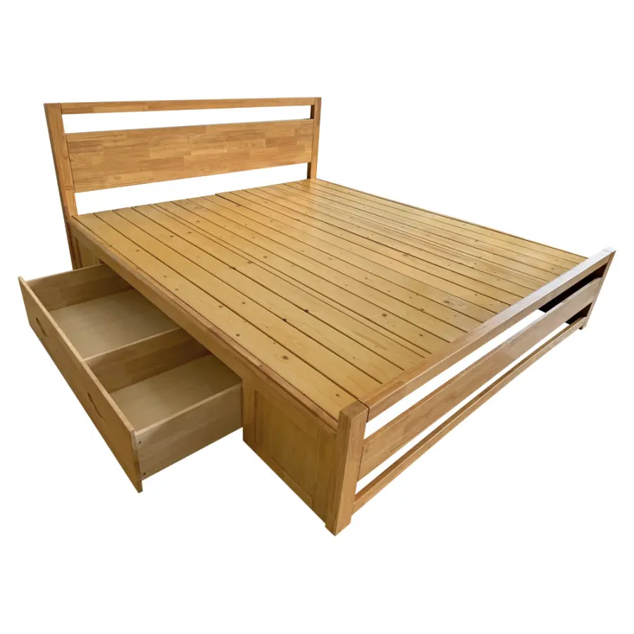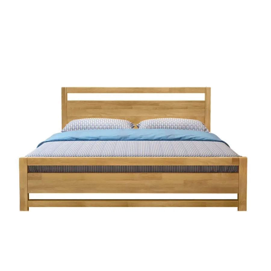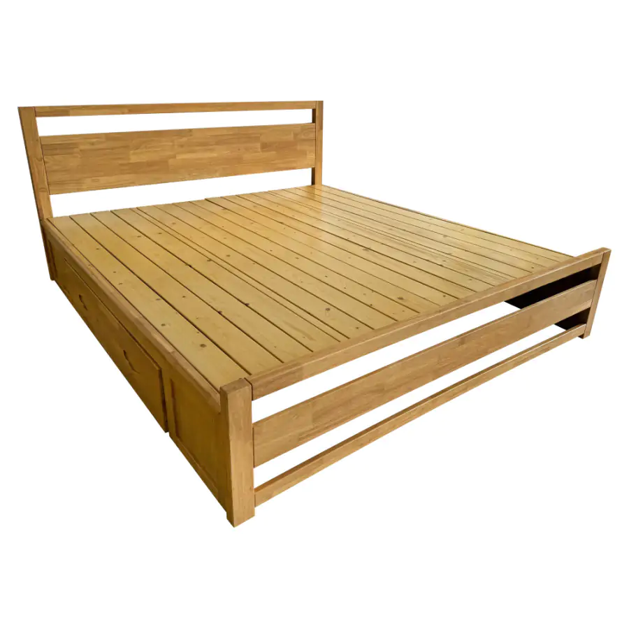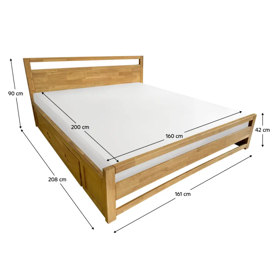 Sníte o moderním designu, maximálním komfortu a ideálním místě k odpočinku a relaxaci? Toto vše nabízí manželská postel SHEILA. Vyrobena je z kvalitního kaučukového dřeva v přírodní barvě, což zajistí dlouhou životnost a pevnost postele. Disponuje praktickým úložným prostorem v podobě dvou šuplíků, které se nacházejí pod postelí. Můžete jej využít k odkládání ložního prádla nebo hraček. Postel je dodávána s roštem. Rošt obsahuje hustě naskládané lamely z borovicového dřeva, čímž poskytuje optimální oporu pro vaši matraci. SHEILA je dodávána bez matrace, tu doporučujeme zakoupit o rozměru 160x200 cm.