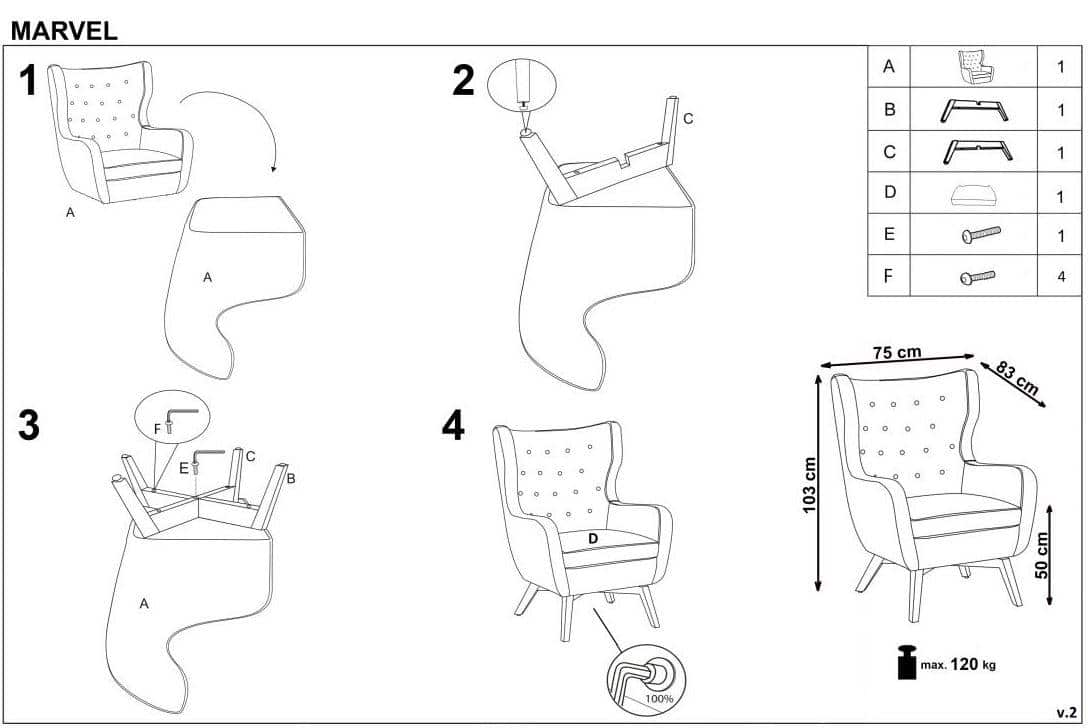 Moderní křeslo Marvel s dekorativním prošitím se stane ozdobou vašeho obýváku.