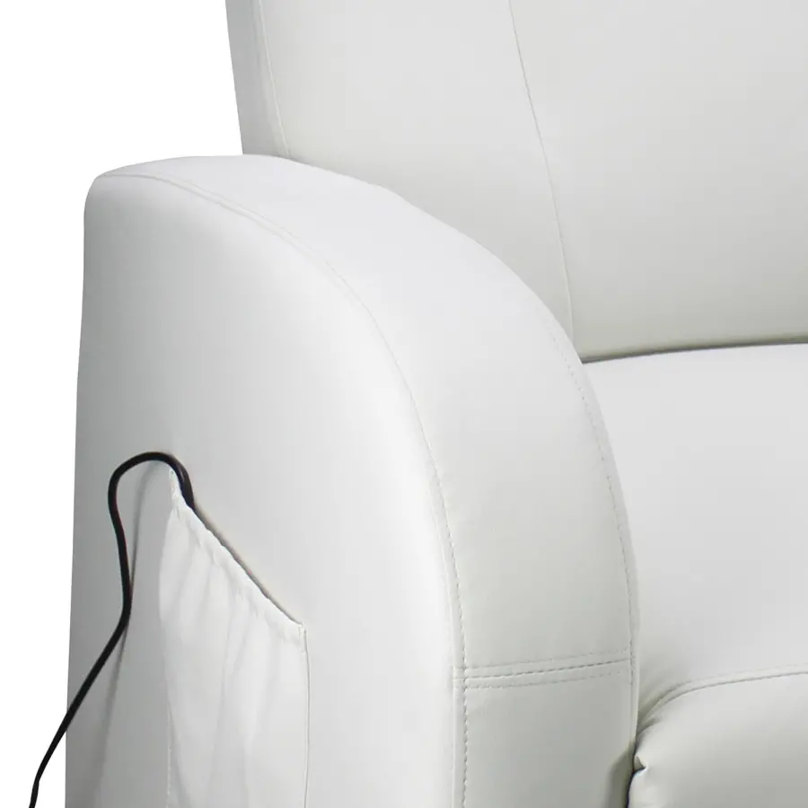 Masážní křeslo TOLEDO s potahem z imitace kůže v krásné krémově bílé barvě vám poslouží stejně dobře jako šikovné ruce špičkového maséra.