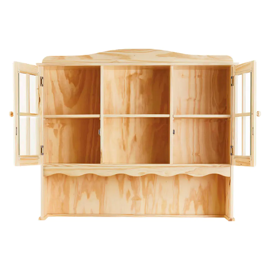 Je vybaven prosklenými dvířky a třemi poličkami pro vytvoření nastavené vitríny - vhodná na zařízení obývacích pokojů, jídelen, ložnic nebo pracoven.